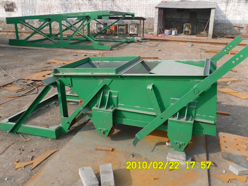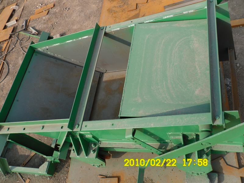 往復式給料機是一種由料斗或料倉給料的給料裝置。這種給料機的往復運動的底板安裝在料斗的下面,呈水平或微傾斜安裝,底板支承在滾軸上,由偏心軸通過連桿驅動,帶動給料機在滾軸上往復運動。閘門用來調節給料機上料層的厚度。當底板在連桿驅動下向前運動時,其上的物料受到向前運動的慣性力,克服物料與底板間的極限摩擦力,而向前滑移一段距離。當底板后退時,新的物料又從料倉中落到底板的后端,然后重復上述過程,從而均勻地運輸物料。