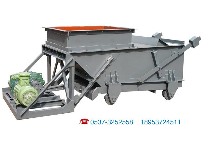 傳動原理:當電動機開動后經彈性聯軸器,減速機,曲柄連桿機構托動傾斜5°的底板在托滾上作直線往復式運動,將煤均勻的卸載到運輸機或其他篩選設備上。